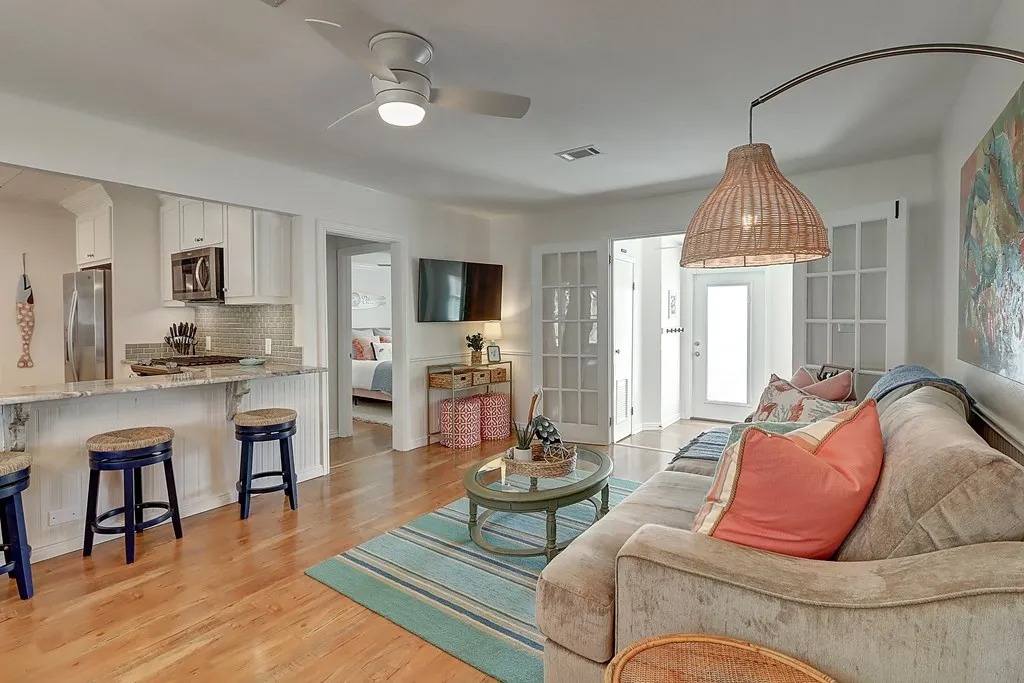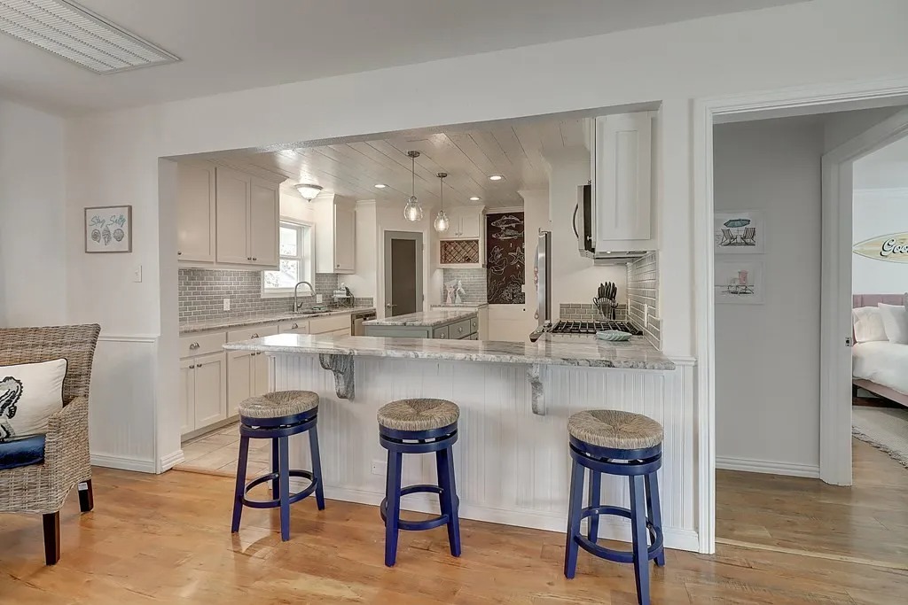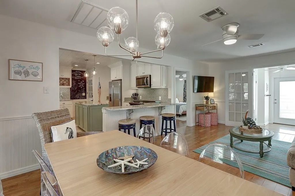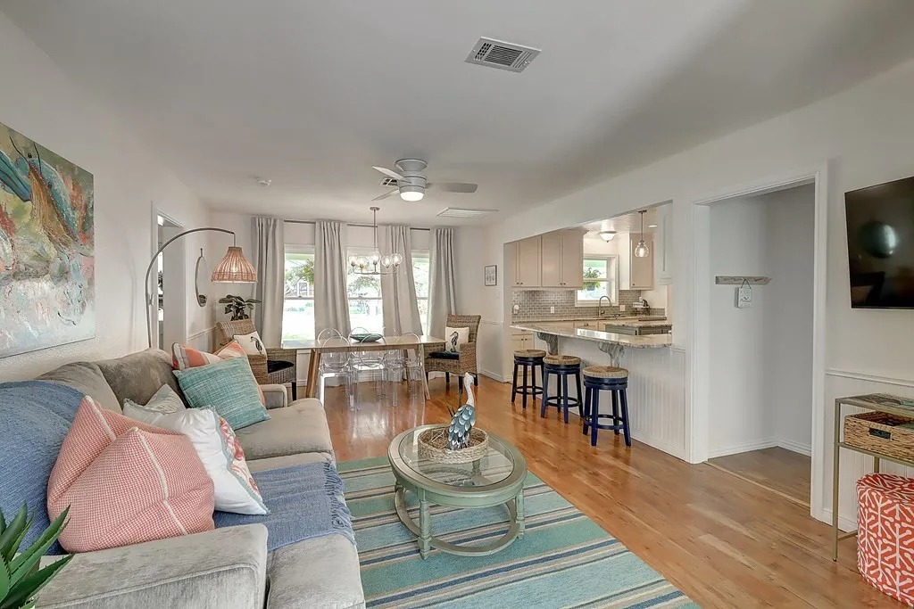 Updated home in Old Rockport offering a flexible floor plan to fit your needs. The layout can function as two bedrooms plus a media room or three bedrooms, with a split primary bedroom design for added privacy. The home features two full bathrooms and an easy, comfortable flow throughout. Enjoy outdoor living with both a front porch and a back patio, perfect for relaxing or entertaining. This property is unfurnished and available with a 12-month lease. No cats permitted. Dogs will be considered on a case-by-case basis, subject to breed and size restrictions, with an applicable pet fee. Built in dishwasher and microwave.